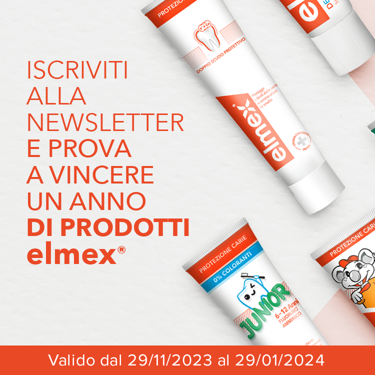 ISCRIVITI ALLA NEWSLETTER E PROVA A VINCERE UN ANNO DI PRODOTTI elmex